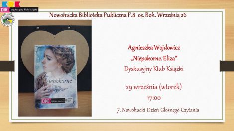 Biblioteka zaprasza na spotkanie Dyskusyjnego Klub Książki, podczas którego miłośnicy książek będą dyskutować o pierwszej części trylogii „Niepokorne” Agnieszki Wojdowicz. Powieść „Niepokorne. Eliza”… opowiada o zawiłych losach niezwykłych kobiet: Elizy Pohoreckiej, Klary Stojnowskiej i Judyty Schraiber, które spełniają swoje marzenia kosztem wyrzeczeń i trudnych kompromisów. Kobiety z pozoru bardzo się różnią, jednak coś je łączy. Każda z nich jest niepokorna…