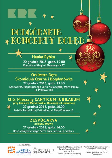 Organizatorzy: Dom Kultury "Podgórze", Rada Dzielnicy XIII, Spółdzielnia Mieszkaniowa Kabel Parafia Rzymsko- Katolicka p.w. św. . Kingi