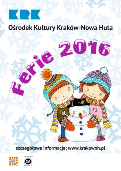 W tym roku szkolnym bardzo wcześnie, bo już w drugiej połowie stycznia, rozpocznie się wyczekiwany przez dzieci zimowy wypoczynek. Dwa tygodnie laby, zabaw na śniegu albo wyjazdów w góry. I choć nie wszyscy mają możliwość wyjazdu, to nikt w te ferie nie powinien się nudzić. Dla tych wszystkich, którzy zimową przerwę spędzają w mieście Kluby Ośrodka Kultury Kraków-Nowa Huta przygotowały bogatą ofertę zajęć i warsztatów, podczas których dzieci nie tylko spędzą miło czas, ale spotkają się z rówieśnikami i zdobędą nowe doświadczenia.