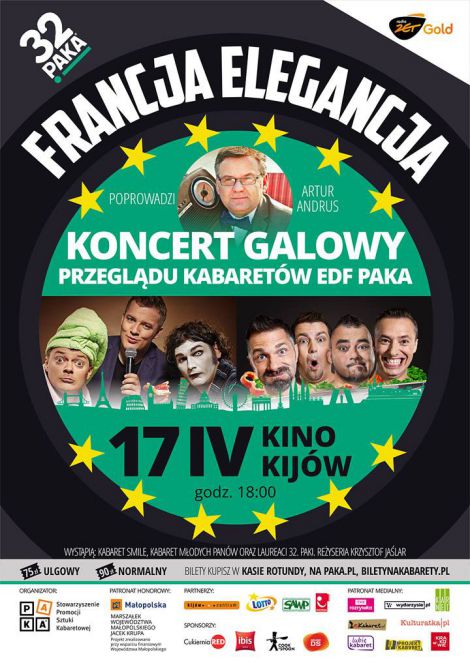 Paryski szyk na scenie Kina Kijów zaprezentują, świętujący niedawno dziesięciolecie działalności Kabaret Młodych Panów i bijący rekordy popularności Kabaret Smile. Obok nich laureaci tegorocznej PAKI pokażą się w zwycięskich numerach i specjalnie przygotowanych na tę okazję skeczach. Pieczę nad całością sprawować będzie Krzysztof Jaślar –reżyser od lat związany z PAKĄ, zaś cały koncert poprowadzi znany ze stylu i klasy Artur Andrus. Serce śmiejącej się Europy bije w Krakowie na PACE!