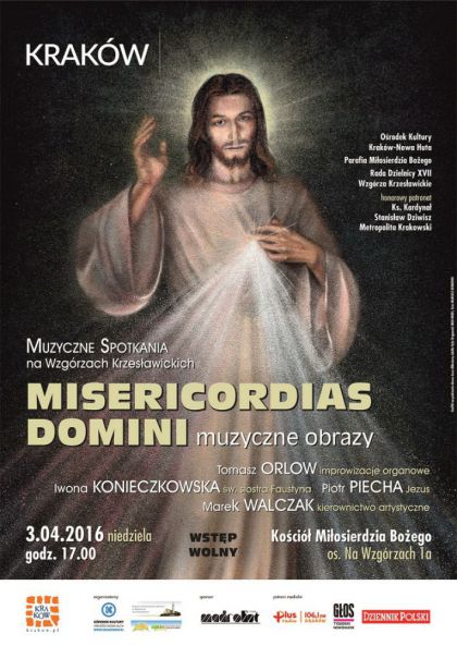 W Roku Jubileuszowym, ogłoszonym przez Papieża Franciszka Nadzwyczajnym Rokiem Miłosierdzia, organizatorzy cyklu Muzyczne Spotkania na Wzgórzach Krzesławickich zapraszają na koncert inspirowany Dzienniczkiem św. Siostry Faustyny, osoby tak ważnej dla szerzącego się kultu Miłosierdzia Bożego. Koncert Misericordias Domini – muzyczne obrazy odbędzie się w niedzielę 3 kwietnia o godzinie 17.00, w kościele p.w. Miłosierdzia Bożego na Wzgórzach Krzesławickich (os. Na Wzgórzach 1a). Wydarzenie uświetni także uroczystości odpustowe z racji przypadającego na tę niedzielę Święta Bożego Miłosierdzia.