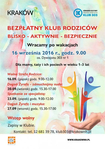 Jaki dźwięk wydaje bębenek? Jak brzmi trąbka? Co to jest rytm? Czy można tańczyć na mamusinych stopach? Wspólnie poszukamy odpowiedzi na muzyczne pytania podczas kolejnego spotkania Dogoń Żyrafę w Klubie 303 Ośrodek Kultury Kraków-Nowa Huta (os. Dywizjonu 303 nr 1). Na początku nie zabraknie rozgrzewki i harców z chustą Klanzy. Nasze paluszki rozgrzeją rymowanki i masażyki. Sprawdzimy nasze poczucie rytmu i refleks na sygnały muzyczne. Zajęcia odbędą się 27 września w godz. 15.30-17.00.