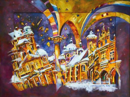 ŁUCJA KŁAŃSKA-KANAREK od początku wiedziała, że malarką od ładnych krakowskich widoczków nie będzie. Pomysł na nietypowy, roztańczony Kraków przyszedł sam - dziś jej pochylone ku sobie wieże, piętrzące się na kolorowym Rynku, nad którymi opiekuńczo pochylają się delikatne Anioły, są znakiem rozpoznawczym Łucji Kłańskiej-Kanarek. 4. grudnia w Krakowie odbędzie się wernisaż kolejnej jej wystawy. Tym razem głównymi bohaterami będą Mali Opiekunowie i… bieżanowskie łąki.