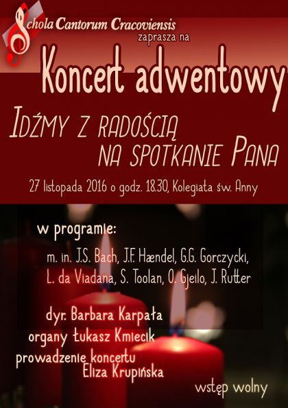 27 listopada 2016 o godz. 18.30, Kolegiata św. Anny