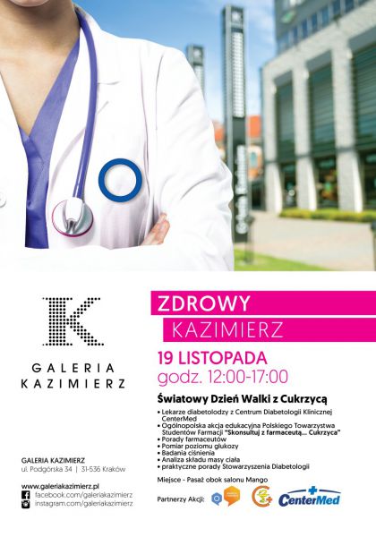 W listopadzie Galeria Kazimierz zorganizuje kolejne spotkanie z serii cyklicznych akcji prozdrowotnych „Zdrowy Kazimierz”. Tematem listopadowego spotkania, w nawiązaniu do obchodzonego 14 listopada Światowego Dnia Walki z Cukrzycą będzie profilaktyka cukrzycy.