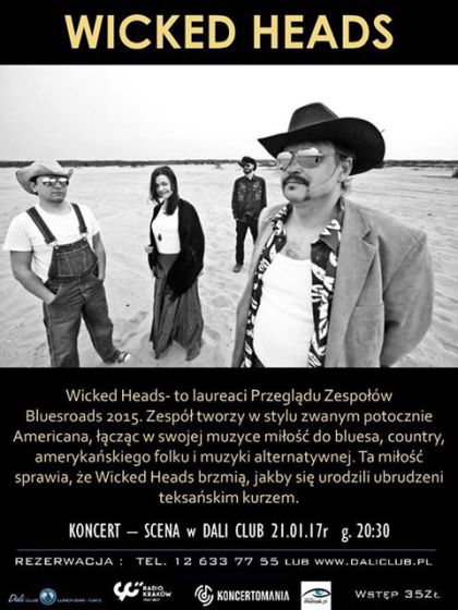 WICKEAD HEADS - to laureaci Przeglądu Zespołów Bluesroads 2015, Megafon 2015, zdobywcy Grand Prix oraz nagrody publiczności Galicja Blues Festival 2015 oraz wyróżnienia w 10-tej edycji Rybnik Blues Festival 2014. Kwartalnik "Twój Blues" przyznał Wicked Heads II miejsce w kategorii "Odkrycie Roku 2015". Grupa powstała w 2013 roku. Zespół tworzy w stylu Americana, łącząc w swojej muzyce miłość do bluesa, country, amerykańskiego folku i muzyki alternatywnej.