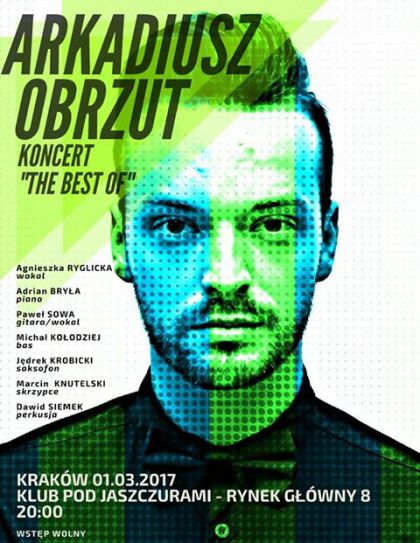 1 marca 2017 r. o godz. 20:00 na scenie legendarnego Klubu Pod Jaszczurami w Krakowie odbędzie się wyjątkowy koncert „THE BEST OF” Arkadiusza Obrzuta!