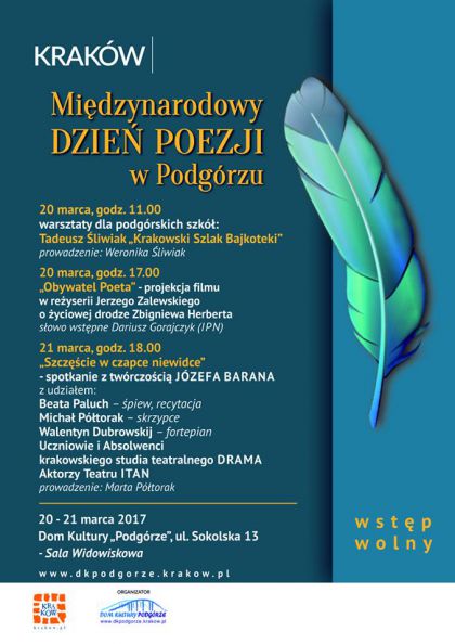 Serdecznie zapraszamy na Międzynarodowy Dzień Poezji w Podgórzu :