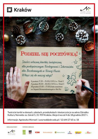 Włącz się do akcji - stwórz własną kartkę świąteczną i podaruj ją podopiecznym Noclegowni i Schroniska dla Bezdomnych w Nowej Hucie.