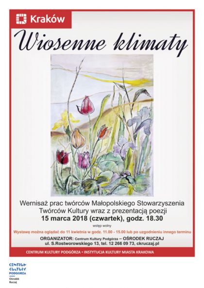 Wernisaż wraz z prezentacją poezji: 15 marca 2018 r. (czwartek), godz. 18:30