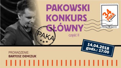 Konkurs Główny to ostatni, decydujący etap 34. Przeglądu Kabaretów PAKA. Dla uczestników to już ostatnia prosta w drodze do kabaretowej kariery. Ponownie muszą zaprezentować się z jak najlepszej strony przed publicznością i jurorami. To podczas tych dwóch wieczorów, Jury Główne wybierze zwycięzców. Zgromadzona publiczność również będzie mogła dorzucić „swoje 3 grosze”, ponieważ każdy widz ma przywilej oddania jednego głosu na artystę, który- według niego- wypadł najlepiej.
