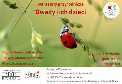 Szkiełko i Oko zajmie się skomplikowaną kwestią przepoczwarzania się owadów i zrobi to w sposób jak zwykle przystępny, zabawny i zajmujący. Zapraszamy wszystkich młodych przyrodników. Koszt udziału 5 zł/osoba. Zajęcia dofinansowane przez Radę Dzielnicy IV Prądnik Biały. Zapisy do piątku.