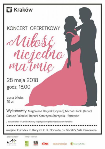 Koncert arii i pieśni operowych i operetkowych pt. „Miłość niejedno ma imię”. Wystąpią: Magdalena Barylak (sopran), Michał Błocki (tenor) i Dariusz Palonek (tenor) i Katarzyna Starzycka (fortepian).