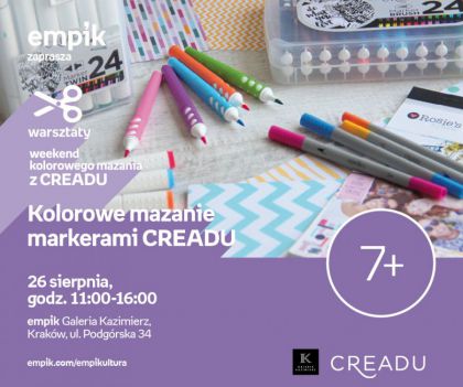 Proste narzędzia plastyczne: mazaki, pisaki i markery CREADU oraz kolorowe kreatywne warsztaty, które pomogą odkryć możliwości drzemiące nie tylko w narzędziach, ale przede wszystkim w Tobie! Przyjdź koniecznie!