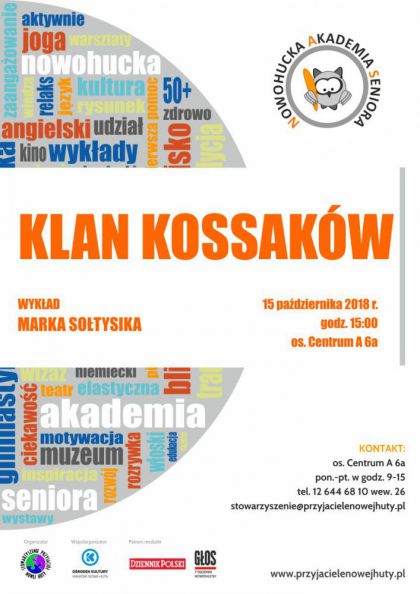 Nowohucka Akademia Seniora (os. Centrum A 6a) zaprasza seniorów na wykład Marka Sołtysika poświęcony klanowi Kossaków, w poniedziałek 15 października o godz. 15.00.