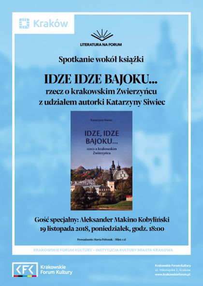 Spotkanie wokół książki Idze, idze bajoku. Rzecz o krakowskim Zwierzyńcu z udziałem autorki Katarzyny Siwiec