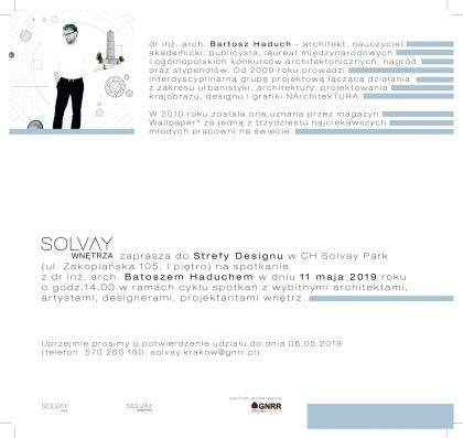 11. 05. 2019 - godz. 14.00 Solvay Park - w ramach projektu Solvay Wnętrza, partner wydarzenia GNRR Nieruchomości.