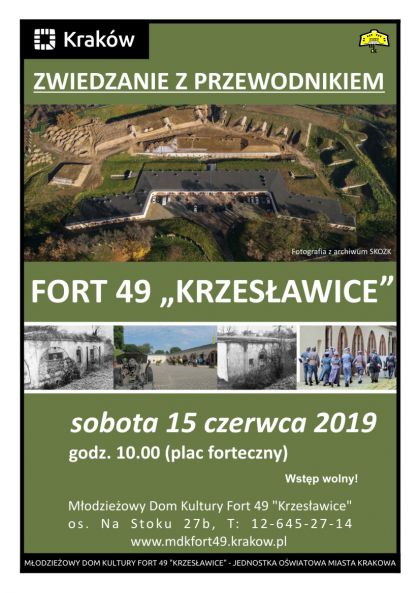 Młodzieżowy Dom Kultury Fort 49 „Krzesławice” zaprasza na zwiedzanie fortu artyleryjskiego, dawnej części Twierdzy Kraków oraz obejrzenia miejsc na co dzień niedostępnych dla gości – takich jak: koszary, schrony i podziemny korytarz. Fort 49 „Krzesławice” zlokalizowany jest na obecnym terenie nowohuckiego osiedla Na Stoku przy ulicy Architektów. Po Forcie 49 „Krzesławice” oprowadzi Dyrektor MDK – Franciszek Dziadoń.