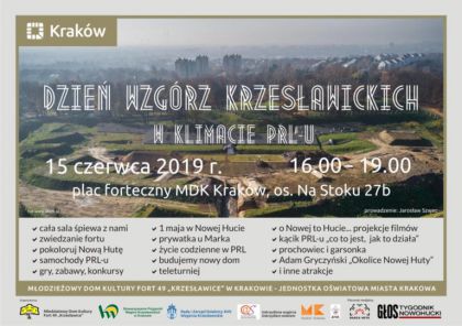 widowisko plenerowe realizowane z okazji 70-lecia powstania Nowej Huty odbędzie się w sobotę 15 czerwca 2019, w godz. od 16:00 do 19:00, na dziedzińcu MDK Fort 49 „Krzesławice”, os. Na Stoku 27b. Przekaz teatralny połączony będzie z piknikową atmosferą i ciekawą propozycją zabaw w klimacie PRL-u. Serdecznie zapraszamy !!!