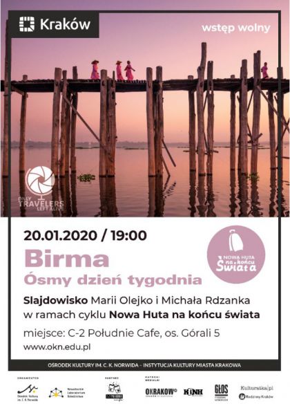 Ośrodek Kultury Norwida zaprasza na slajdowisko Marii Olejko i Michała Rdzanka pt. „Birma. Ósmy dzień tygodnia”, w ramach cyklu „Nowa Huta na końcu świata”. Wstęp wolny.
