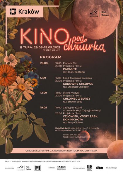 Klub Kuźnia Ośrodka Kultury im. C. K. Norwida zaprasza na letnie weekendowe „Kino pod chmurką”. Podczas cotygodniowych spotkań przed budynkiem Klubu Kuźnia odbędą się projekcje filmów, które mieszkańcy dzielnicy wybrali w głosowaniu. Pokazy zostaną poprzedzone wydarzeniami towarzyszącymi.