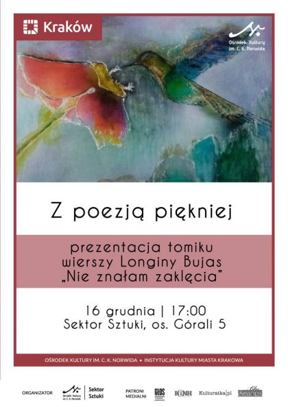 Zapraszamy na spotkanie „ Z poezją piękniej”, na którym Longina Bujas zaprezentuje swój najnowszy tomik wierszy pt. „Nie znałam zaklęcia”.