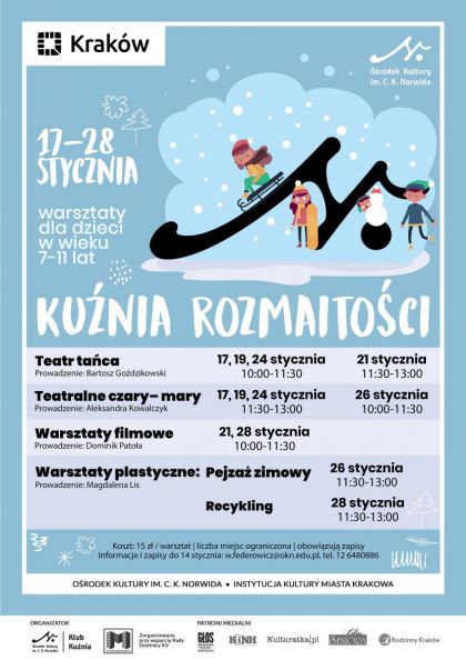 Informacje i zapisy (3-14 stycznia): w.federowicz@okn.edu.pl, tel. 12 648 08 86.