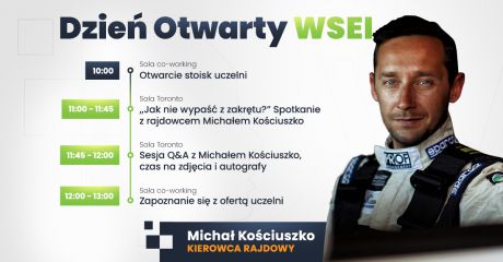 Wyższa Szkoła Ekonomii i Informatyki w Krakowie zaprasza uczniów szkół ponadgimnazjalnych, a szczególnie maturzystów, do udziału w wyjątkowym Dniu Otwartym WSEI z Michałem Kościuszko.