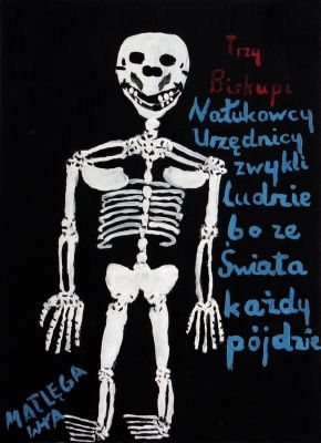 Tymczasem obrazy Władysława Matlęgi, jak na złość, wymykają się temu określeniu. Matlęga tworzy rozbudowane narracje, o czym przekonuje złożoność symboliki i motywów, które – dyktowane logiką znaną tylko autorowi – pojawiają się i znikają. Im więcej szczerości i prostoty chcemy widzieć w jego pracach, tym bardziej chowa się za wieloznaczną leksyką i tym bardziej wodzi nas za nos.