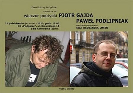W cyklu Podgórska Scena Poezji wystąpią PIOTR GAJDA oraz PAWEŁ PODLIPNIAK.