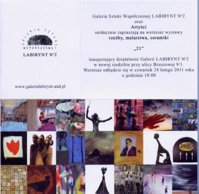 to 21 lat istnienia krakowskiej Galerii Labirynt, to 21 artystów: malarzy, grafików, rzeźbiarzy i ceramików, którzy prezentowali swoją twórczość na wystawach indywidualnych zrealizowanych przez Galerię Labirynt w latach minionych w jej dwóch siedzibach oraz w muzeach i galeriach w Polsce, Europie i USA.