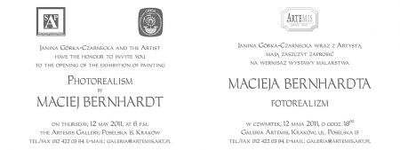 Galeria ARTEMIS serdecznie zaprasza na najbliższą wystawę malarstwa Macieja BERNHARDTA pt. "Fotorealizm".