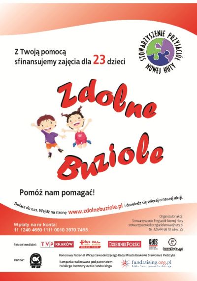1 lipca rozpoczyna się kampania społeczna Stowarzyszenia Przyjaciół Nowej Huty - Zdolne buziole, której partnerem jest nasz Ośrodek.