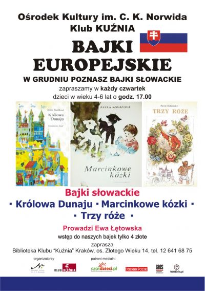 Zapraszamy do Klubu Kuźnia OKN na cotygodniowe spotkania z baśnią i bajką europejską dla dzieci przedszkolnych.