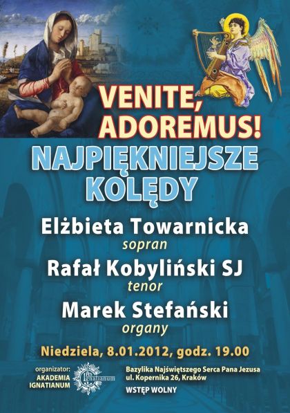 serdecznie zapraszają na koncert kolęd Venite, adoremus! Najpiękniejsze Kolędy, który odbędzie się w niedzielę, 8 stycznia 2012 r. o godz. 19.00 w Bazylice NSPJ, przy ul. Kopernika 26.