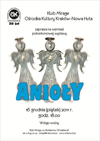 Klub Mirage Ośrodka Kultury Kraków-Nowa Huta (os. Bohaterów Września 26) zaprasza 16 grudnia (piątek) 2011 r. o godz. 18.00 na wernisaż pokonkursowej wystawy prac plastycznych dla młodzieży gimnazjalnej i licealnej.