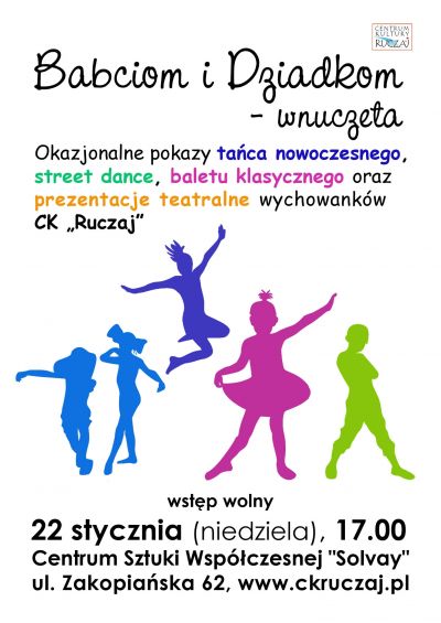 Występy odbędą się w sali widowiskowej Centrum Sztuki Współczesnej "Solvay", ul. Zakopiańska 62.