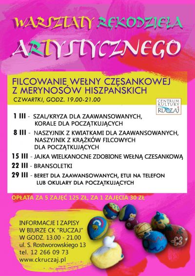 Więcej informacji na www.ckruczaj.pl w zakładce warsztaty.