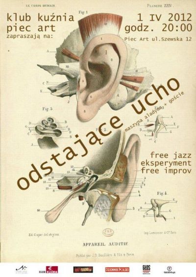 Na piątym koncercie w ramach cyklu „Odstające ucho” kwartet Maszyna Aladyna oraz goście specjalni zagrają gościnnie w krakowskim klubie Piec Art. Na ul. Szewskiej 12. Organizatorzy zapowiadają ucztę dla słuchaczy rządnych szorstkich, niesztampowych muzycznych wrażeń. Będzie niszowo w najlepszym tego słowa znaczeniu. Start godz. 20.00 – wstęp wolny.