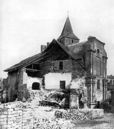 fot. Kościół Św. Ducha po wyburzeniu szpitala, w tle wieża kościoła Św. Krzyża, 1892. Na miejscu zabudowań duchaków wybudowano Teatr im Juliusza Słowackiego.