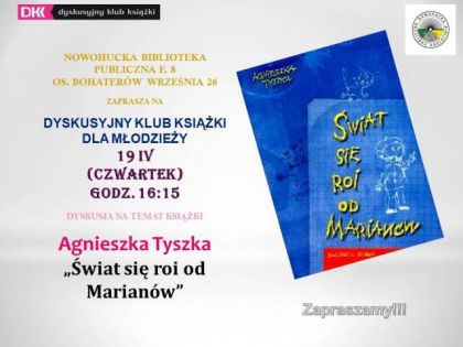 W 2008 roku w Filii nr 8 NhBP powstał Dyskusyjny Klub Książki dla Młodzieży. Raz w miesiącu organizowane są spotkania dla dzieci w wieku 9-12 lat. Celem spotkań jest integrowanie dzieci, które łączy pasja czytania oraz chęć wymiany myśli i opinii na temat przeczytanych książek. Dodatkowym walorem klubu są działania edukacyjne prowadzone przez moderatorów. Młodzież przy okazji spotkań poznaje sposoby sporządzania notatek, rozwija swój język, wiedzę na temat autorów, nabywa umiejętności prezentowania swojego stanowiska i jego obrony. Biblioteka zaprasza młodych czytelników na spotkanie Klubu. Rozmowa toczyć się będzie wokół powieści Agnieszki Tyszki opowiadającej o życiu trzynastoletniej Ani.