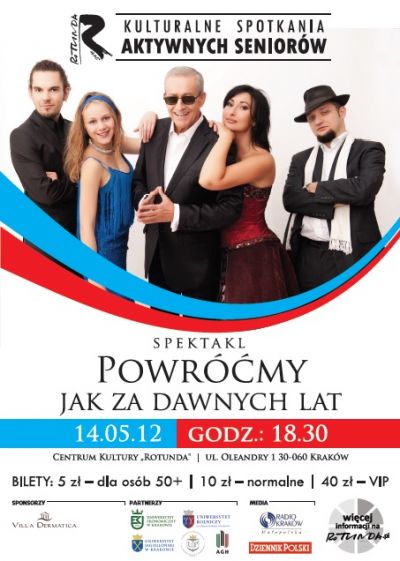 W ramach cyklu KULTURALNE SPOTKANIA AKTYWNYCH SENIORÓW 14 maja zapraszamy na Spektakl pt. "Powróćmy jak za dawnych lat"