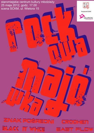 W piątek 25 maja o godz. 17.00 zapraszamy na ROCKOWĄ MAJÓWKĘ na scenie SCKM, ul. Wietora 15. Zagrają zespoły działające w Staromiejskim Centrum Kultury Młodzieży: Black n’ White, Crodhen, East Flow i Znak Pośredni.