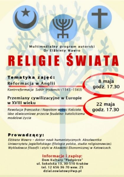 Zapraszamy na multimedialny program autorski dr Elżbiety Wawro poruszający istotne zagadnienia z dziedziny życia religijnego róznych wyznań.