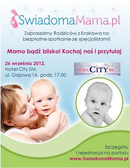 Już 26 września w Hotelu City SM odbędzie się spotkanie dla rodziców z Krakowa z udziałem psychologa i doradcy laktacyjnego. Odbędzie się także pokaz wiązania chust połączony z krótkim warsztatem.