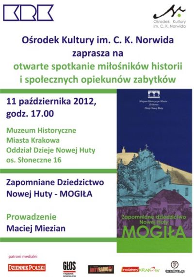 Zapraszamy na październikowe otwarte spotkanie miłośników historii i społecznych opiekunów zabytków, które odbędzie się 11 października 2012 r. (czwartek) o godz. 17.00 w Muzeum Historycznym Miasta Krakowa Oddział Dzieje Nowej Huty os. Słoneczne 16.