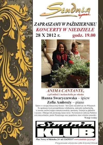 Hanna Swaryczewska – śpiew Zofia Ambroży – piano