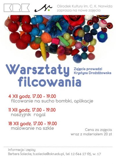 4 XII – filcowanie na sucho: bombki, aplikacje