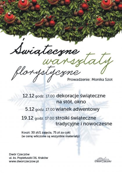 Zapraszamy na świąteczne warsztaty florystyczne. w Dworze Czeczów.