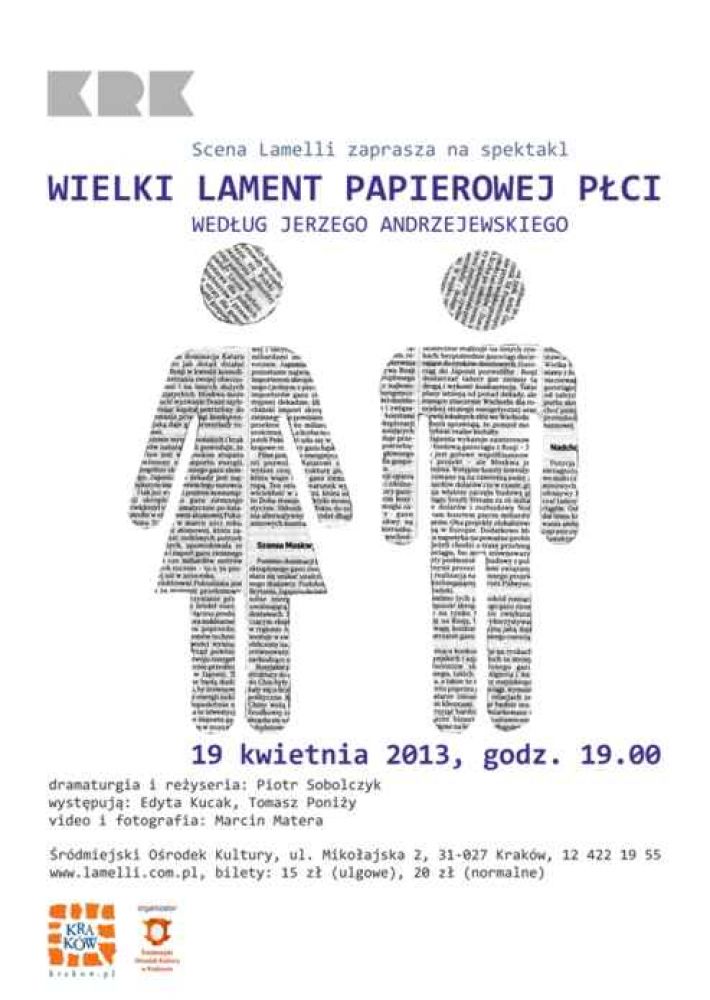 Scena Lamelli zaprasza na spektakl: "Wielki Lament Papierowej Płci" według Jerzego Andrzejewskiego